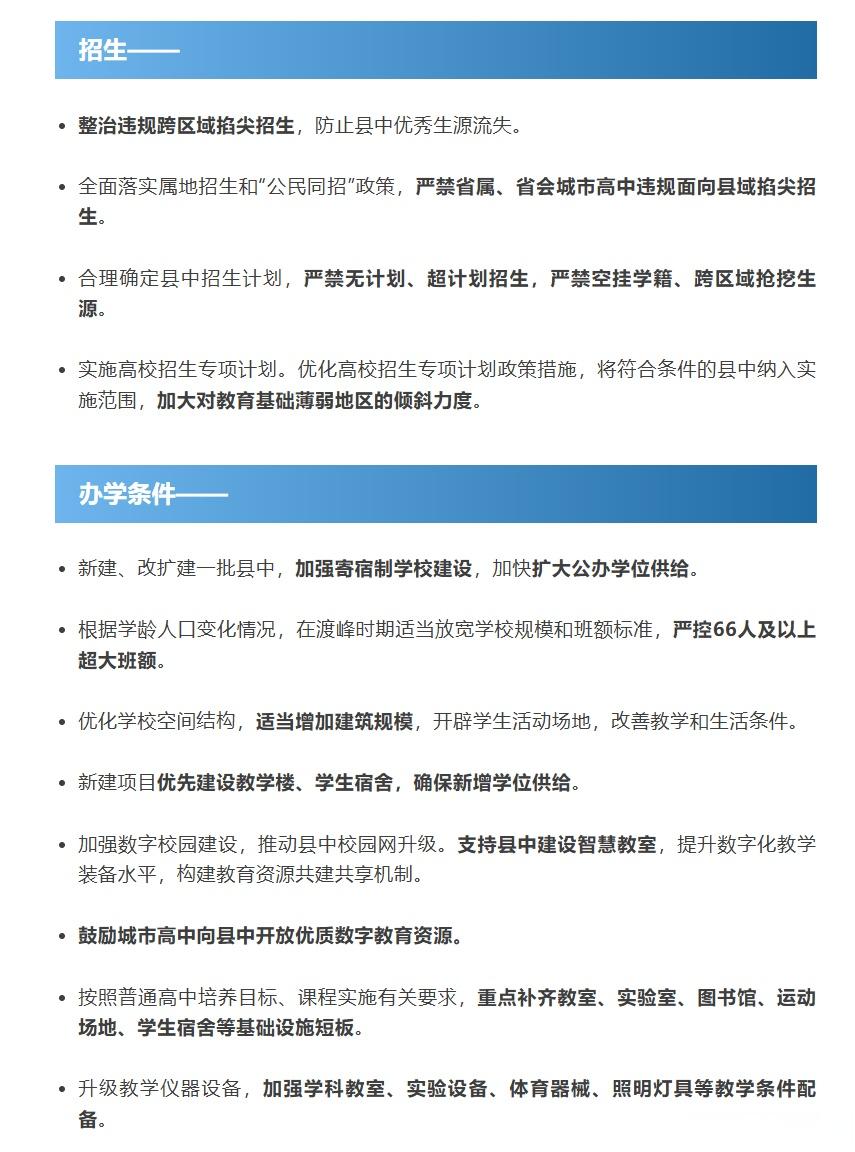 日前,教育部等六部门印发《县域普通高中振兴行动计划》,对严格规范普通高中办学行为,优化教育生态作出了具体部署。学生上课、老师教学将会有哪些变化?一起来看——