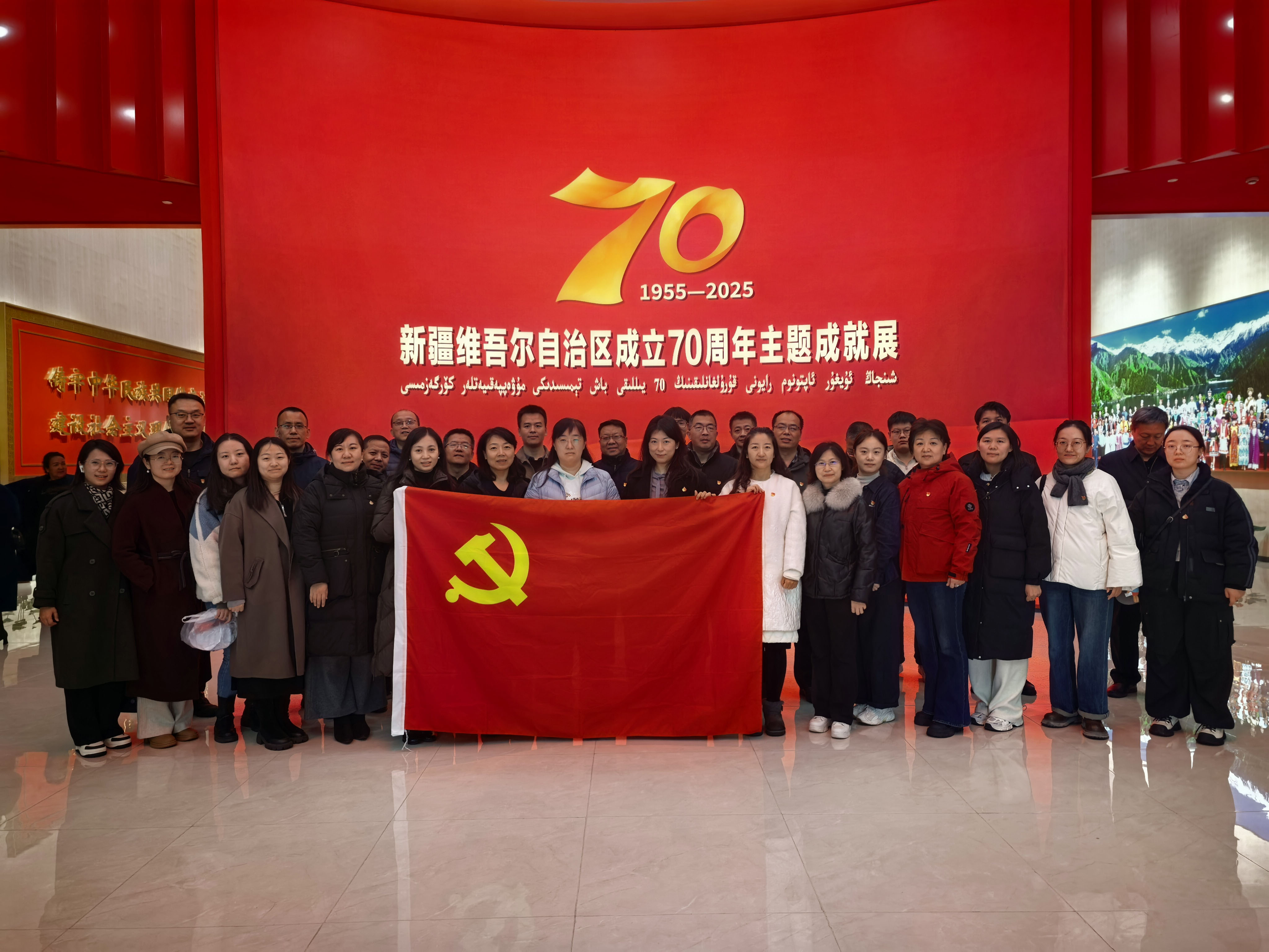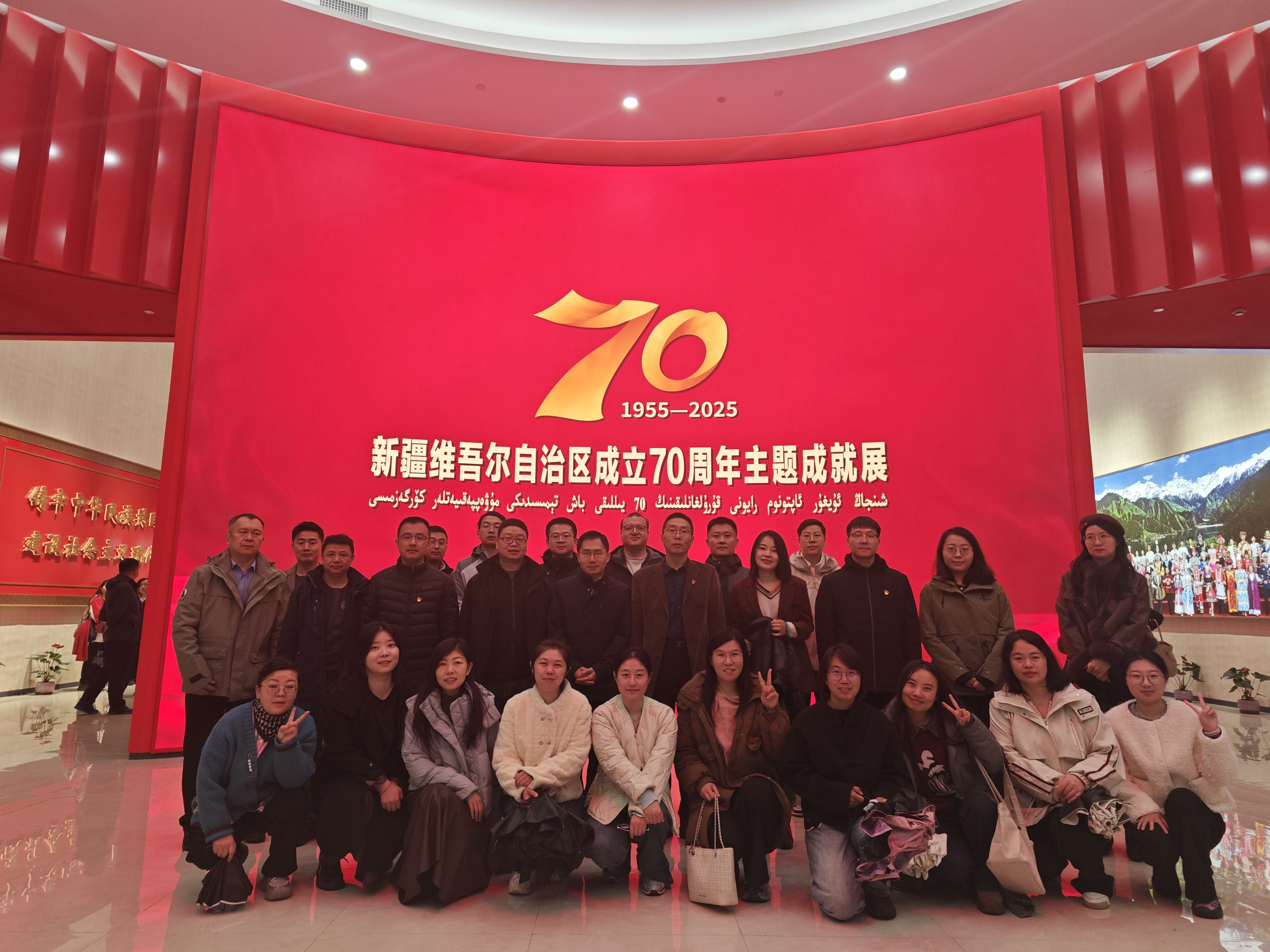 为深刻感受新疆维吾尔自治区成立70周年来取得的辉煌成就与历史性变革,引导党员干部进一步厚植爱国爱疆情怀,坚定理想信念,汇聚团结奋进的民族精神力量。兵团教育局直属机关党委组织局机关党支部、教科院党支部、兵团教育服务保障中心党支部及兵团教育评估与质量监测中心党支部,共计70余人,前往乌鲁木齐市文化中心开展主题党日活动——参观“新疆维吾尔自治区成立70周年主题成就展”。
