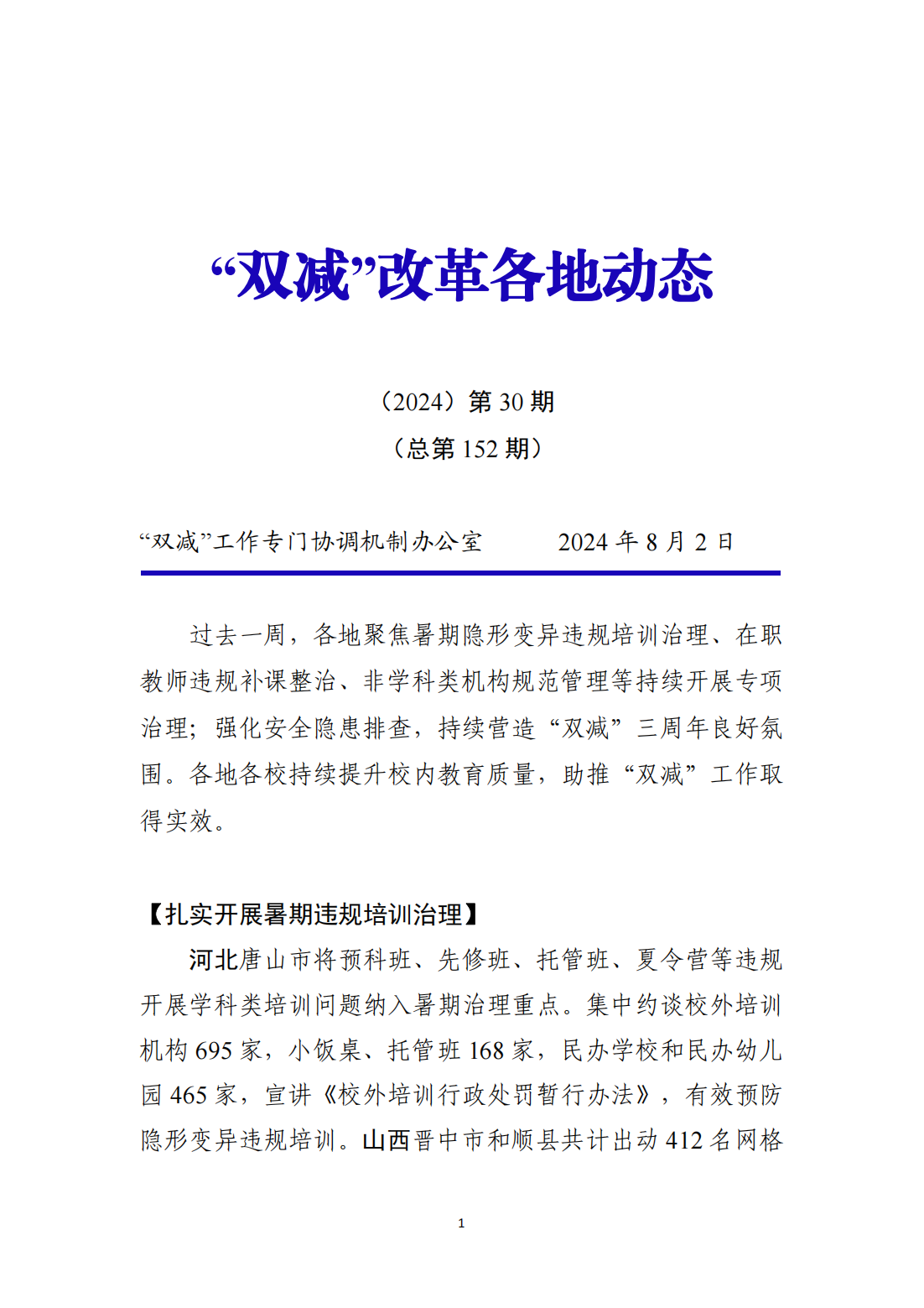 “双减 ”改革每日快报——2024 年第 30期