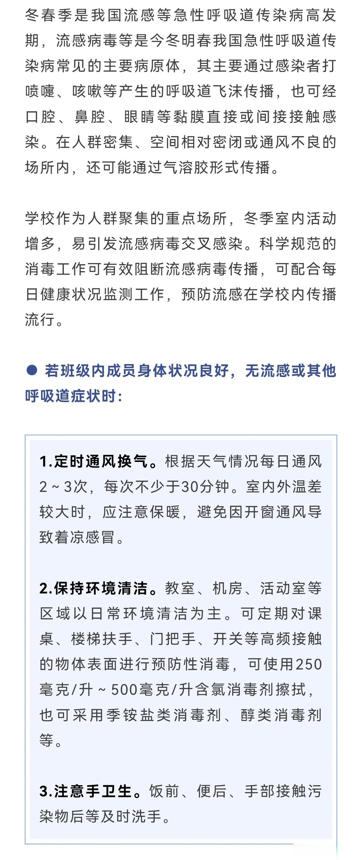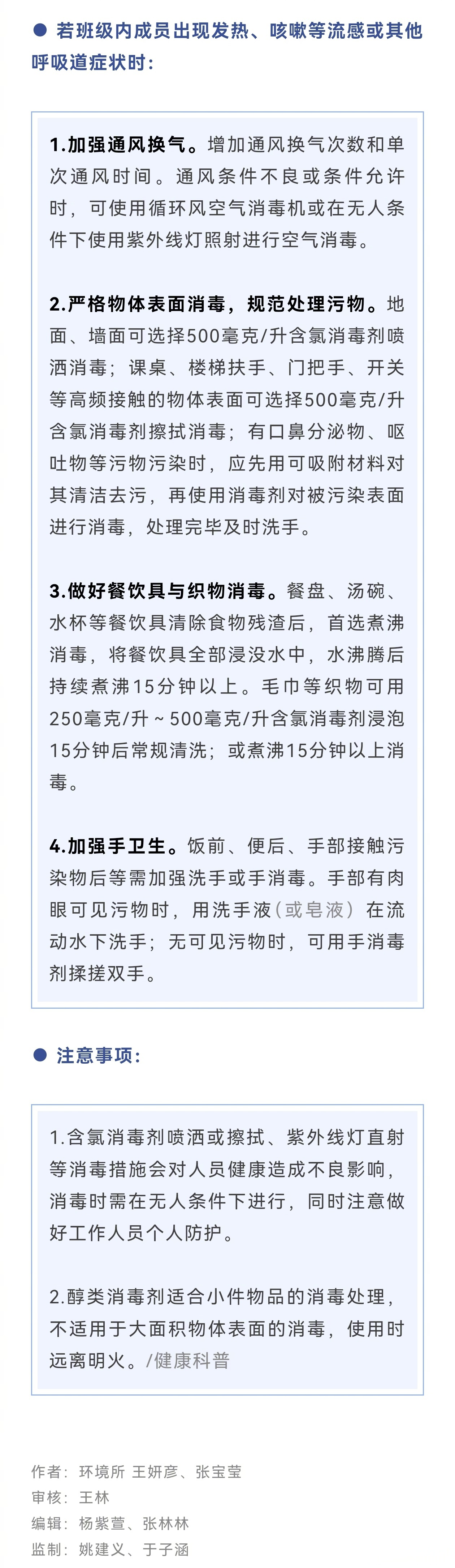 学校作为人群聚集的重点场所,冬季室内活动增多,易引发流感病毒交叉感染。科学规范的消毒工作可有效阻断流感病毒传播,可配合每日健康状况监测工作,预防流感在学校内传播流行。如何做好校园哦里的流感防护消毒工作?一起来看——