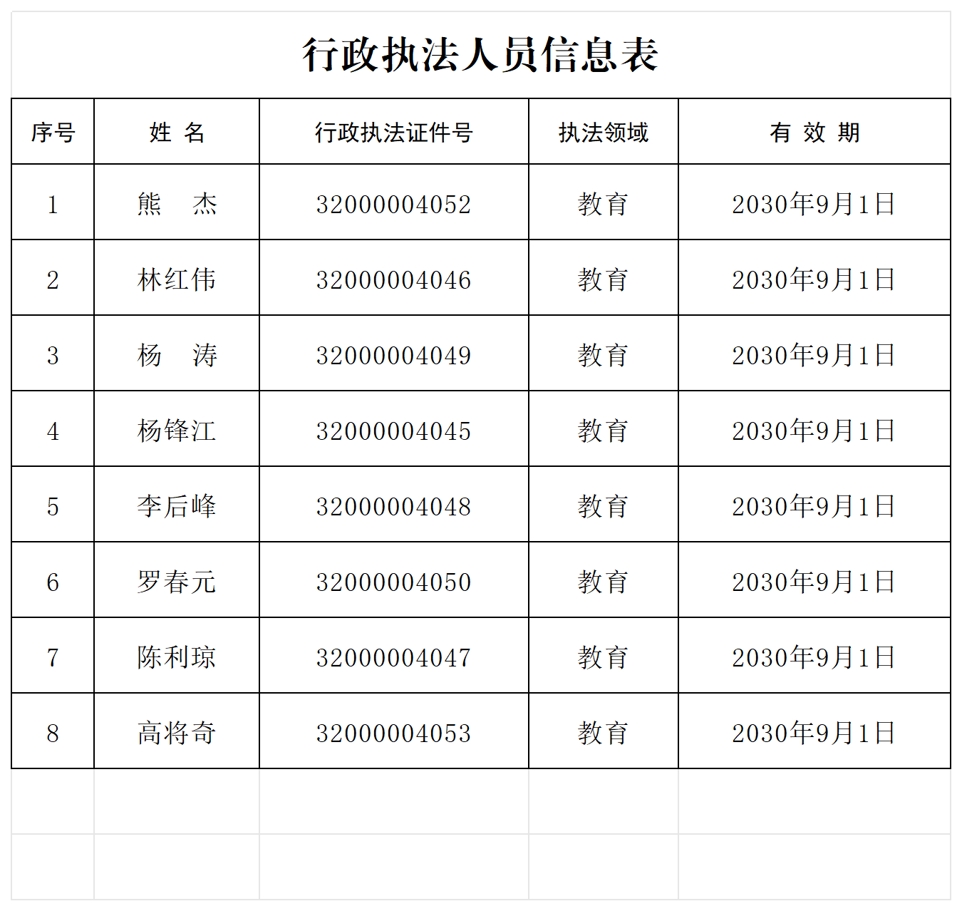 兵团教育局行政执法人员信息